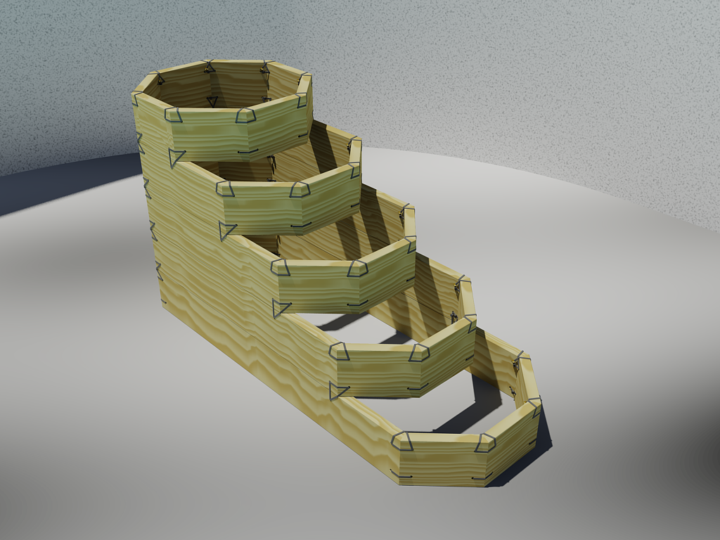 Die Gartenbock Pflanzentreppe der Größe M mit 5 Reihen und 5 Stufen kann wahlweise zusammengebaut werden.